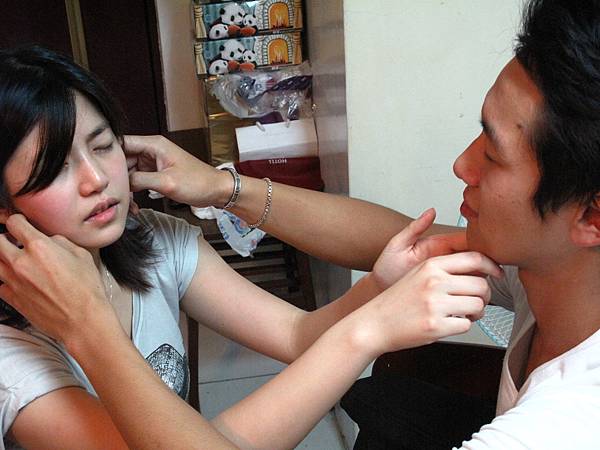 雖然戲裡聽不太清楚Danny與雅妍的對話,但我可沒偷懶,前晚我寫了一個完整的角色建立與對白劇本給他們,